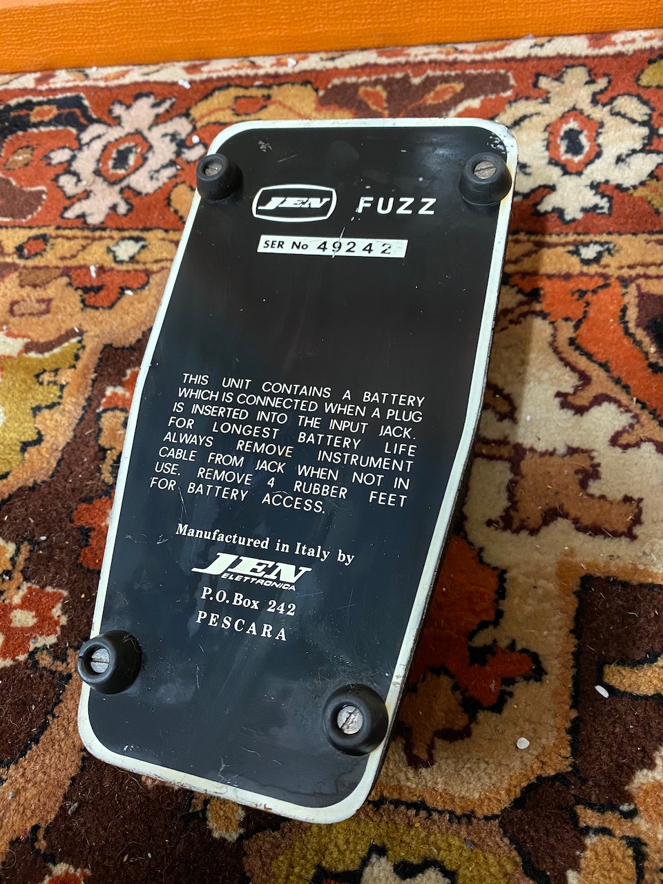A thing of legend! This Jen Fuzz pedal dates to the late 1960s (most likely 1967) and is pretty much the same as the legendary Tonebender pedal. This is a sound to absolutely die for! This was bought from the original owner and has had very little work done on it as you can see. You’ll not find a better sounding pedal out there! Please check out the pictures below as they form part of our description.