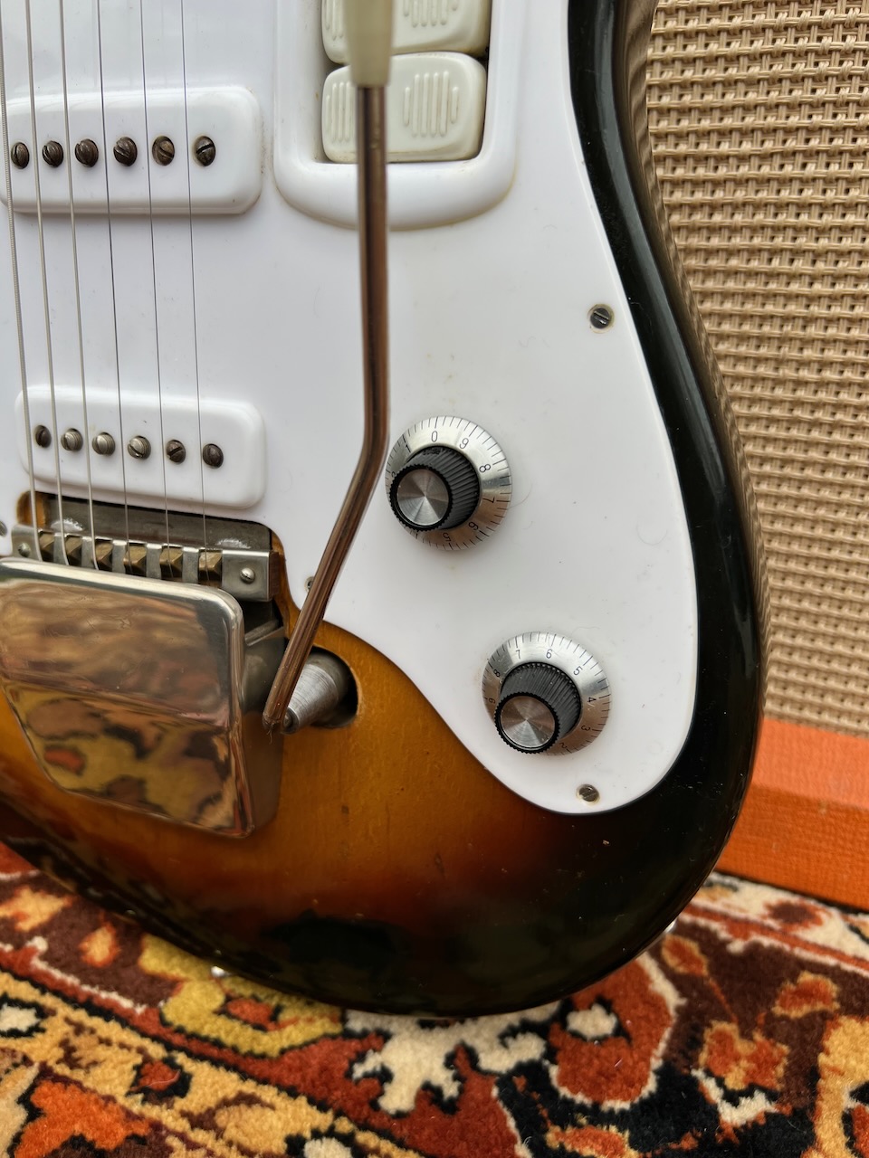 This is a truly stunning and truly rare EARLY example of this classic guitar. Many many pictures of these guitars being played by the likes of George Harrison, Jimmy Page, etc. They were the slightly more affordable and easier to get hold of ‘Fender Stratocaster’ in the UK. This one I purchased from the original owner who had bought this brand new in the early 1960s in Liverpool, and had actually played in The Cavern with this very guitar. This very guitar can be heard on the track ‘A Little You’ by Chick Graham & the Coasters. I’ve seen some of the slightly earlier ‘3-aside’ examples of this guitar fetch upwards of £6000, so grab an absolute bargain.