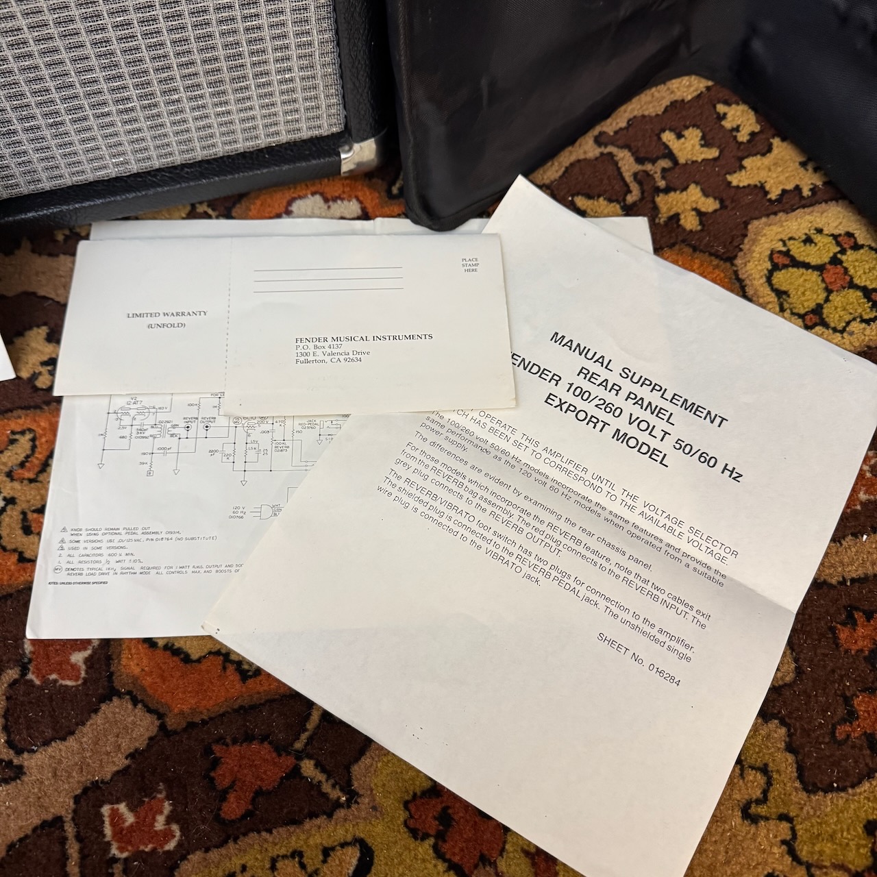 This is a stunning, rare amplifier with one of the best sounds I’ve heard! If you know, you know! A 1982 ‘first year’ Fender Super Champ, built by one of the last great builders – Paul Rivera for Fender. It’s in truly mint condition and comes complete with the original cover, manual and warranty card. It’s a beauty! This one is truly incredible with not a mark on it cosmetically, and pretty much all original inside too. All transformers date to 1982 with the ‘2’ prefix following the code. You’ll really not be disappointed with this. Please see the pictures below as these form part of my description.